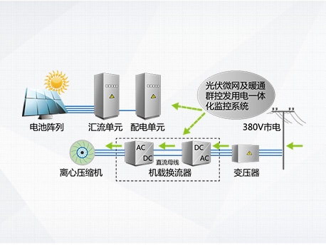 光伏发电系统不发电,,,主机向电网取电运行,,机组相当于常规高效变频离心机。。。。